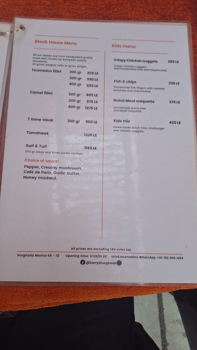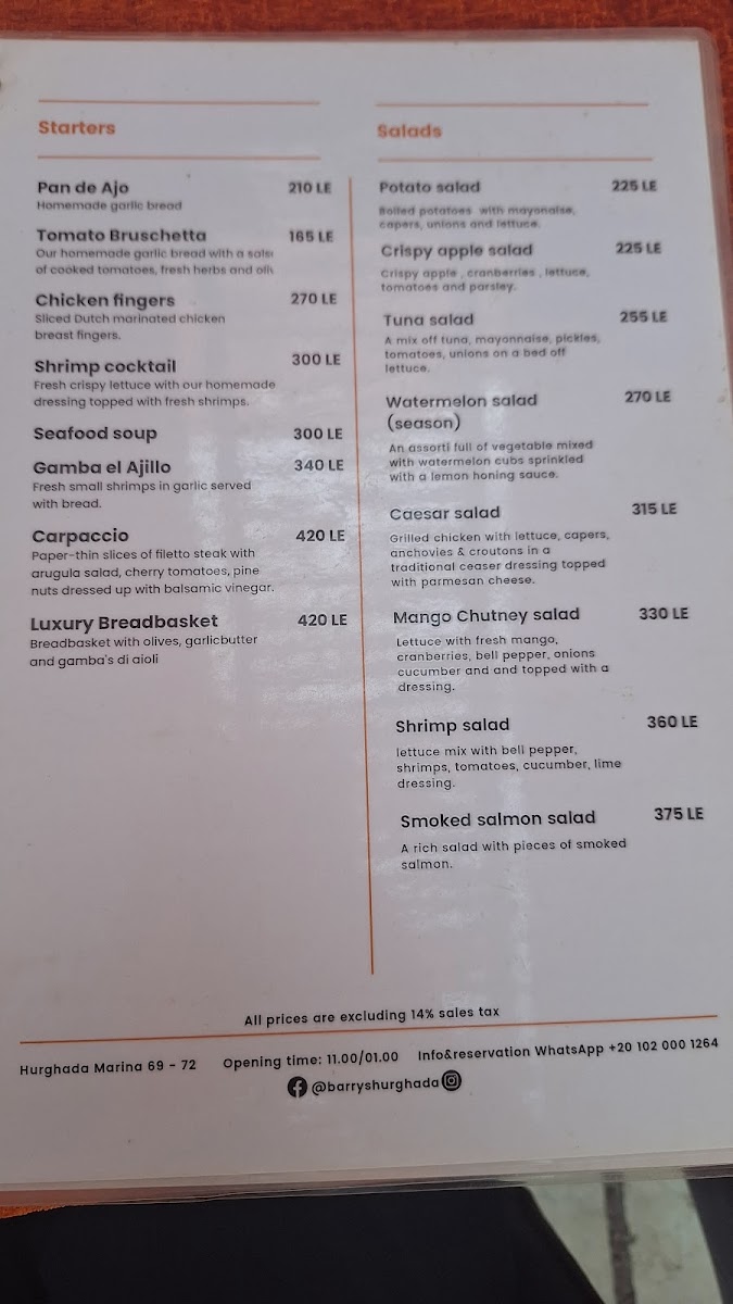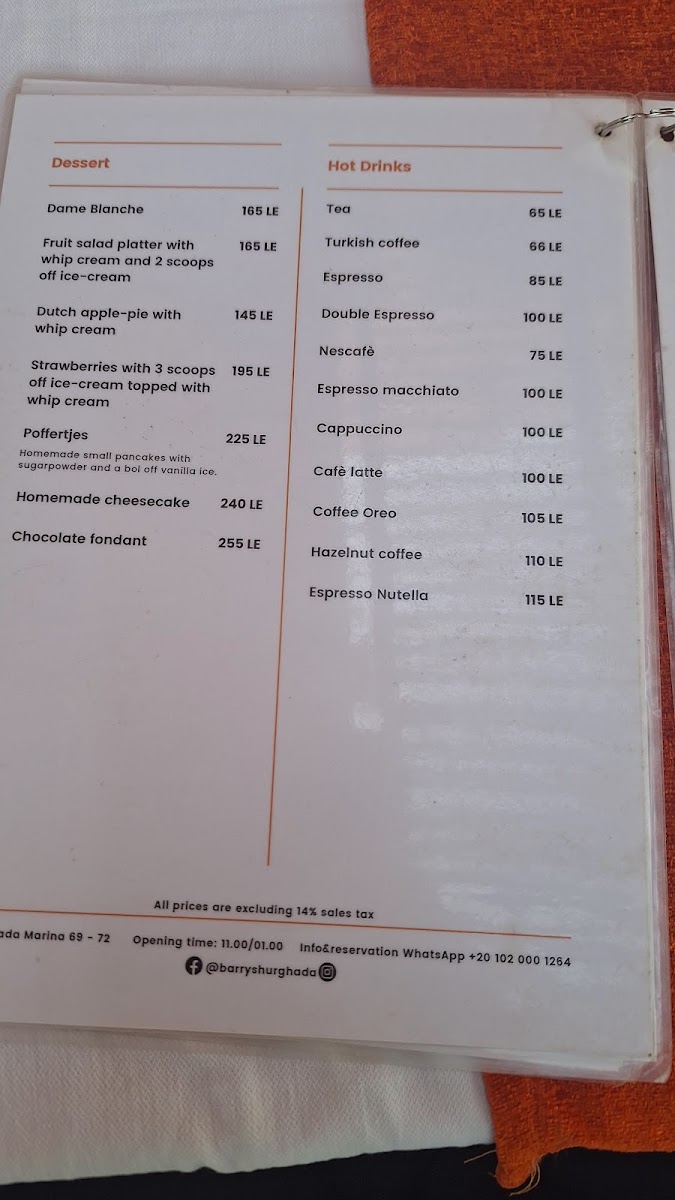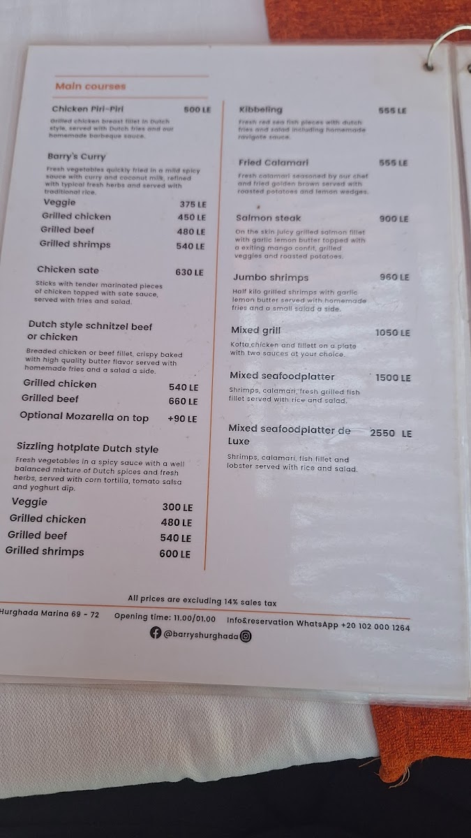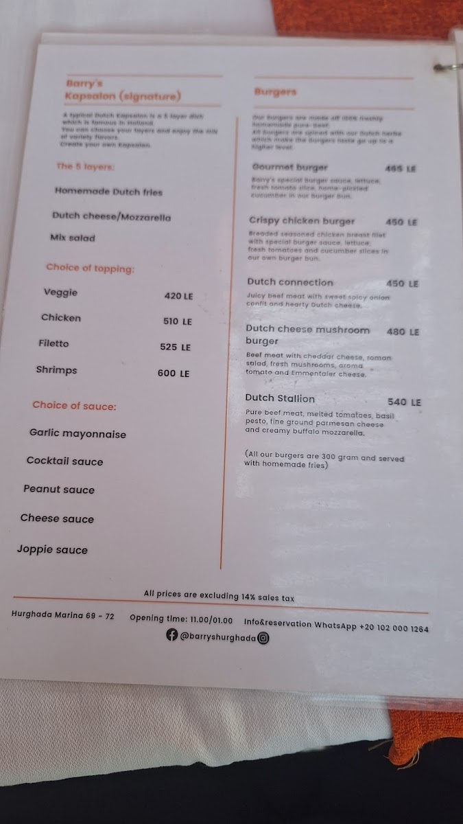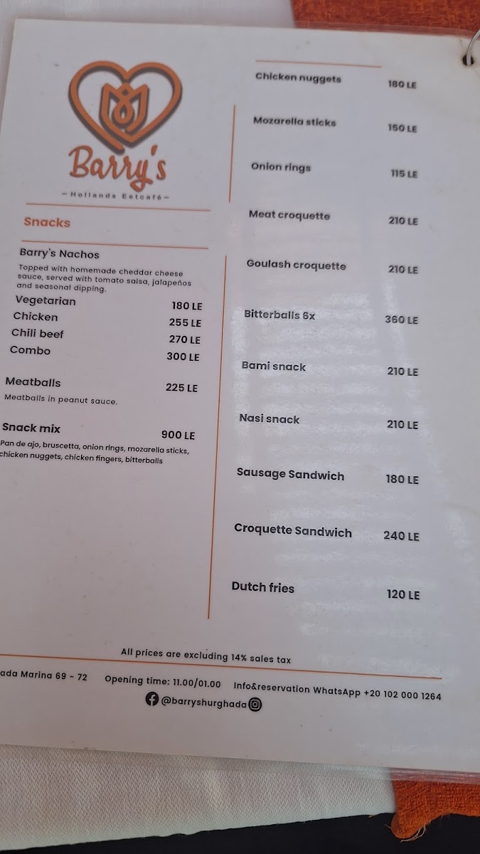 Barry's Hollands Eetcafe Menu